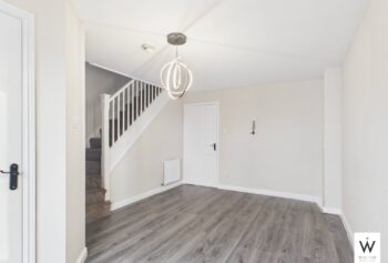 This lovely mid-terraced home in a quiet Carfin development has been recently painted throughout. The ground floor features a hallway with WC, a cosy lounge with laminate flooring, and a kitchen/dining area with patio doors leading to a private, fully fenced rear garden.