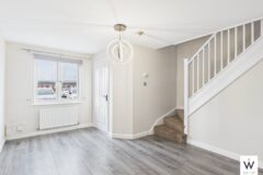 This lovely mid-terraced home in a quiet Carfin development has been recently painted throughout. The ground floor features a hallway with WC, a cosy lounge with laminate flooring, and a kitchen/dining area with patio doors leading to a private, fully fenced rear garden.