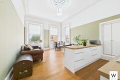 Ideally situated on the first floor, with an immaculately maintained communal stairway, the subject flat is tastefully decorated and generously proportioned with natural light flooding the property. Upon entering, there is an impressive and welcoming hallway with beautiful wooden flooring that flows seamlessly into the open-plan kitchen/living space, creating a warm and elegant feel throughout. From here, the property also offers two sizable double bedrooms and a spacious bathroom.